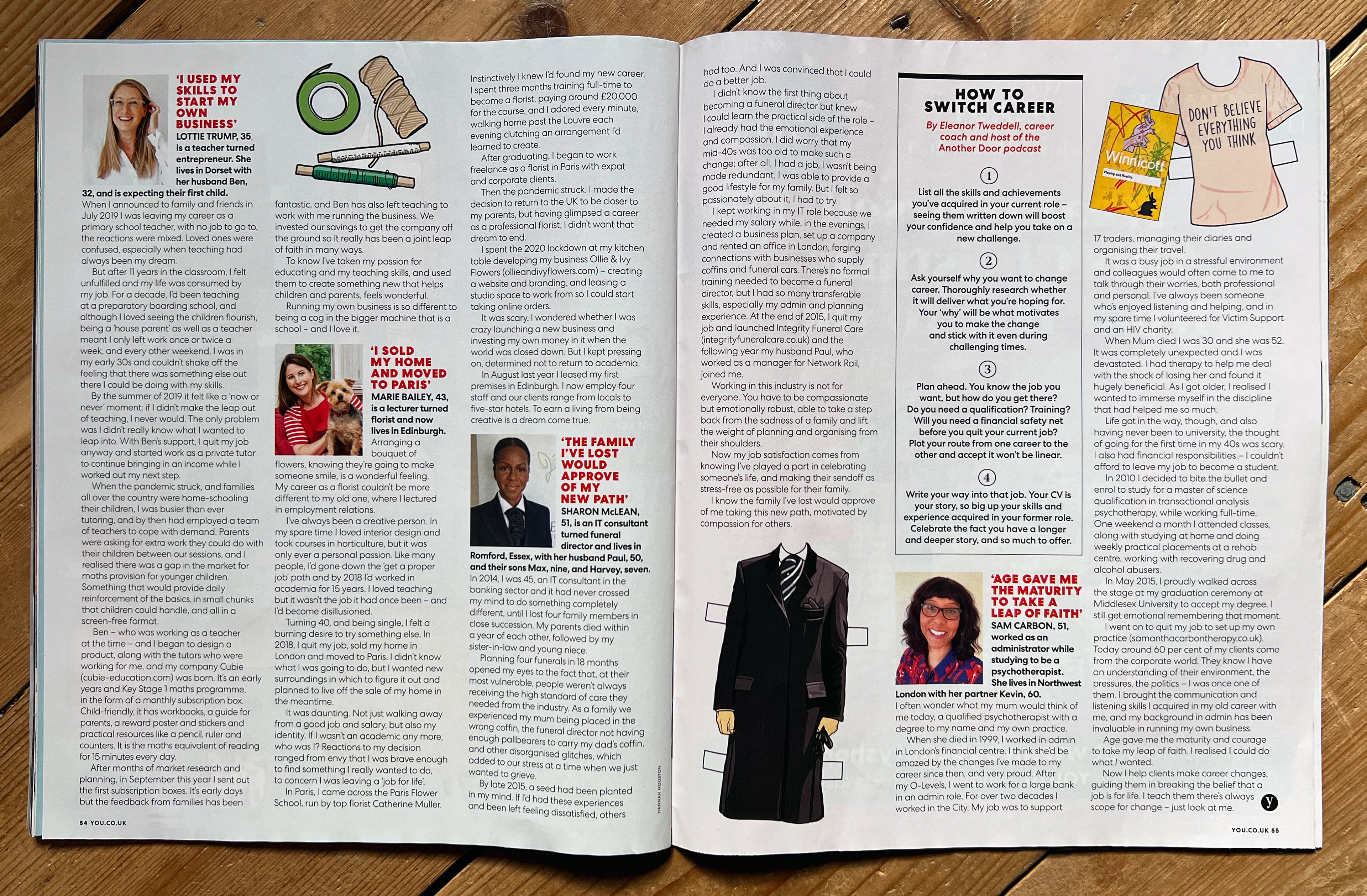 YOU magazine commissioned this 'paper doll' illustration for a feature about four women who swapped steady, well-paid careers for exciting but untried paths.